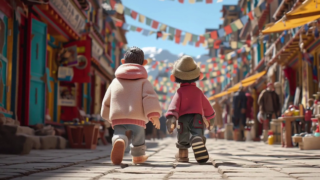 Dorjey’s journey takes a new turn.For a boy from a quiet Ladakhi village, the city is full of surprises crowds, noise, new food, and unfamiliar faces.With his father beside him, Dorjey begins to explore this new world for the very first time.